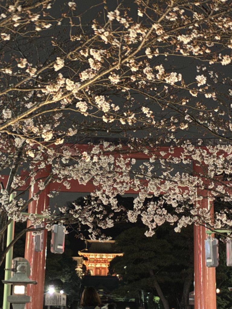 日中はものすごい人が押し寄せてきている鎌倉ですが、住民の特権として、夜中の夜桜散歩を楽しんでいます(*^^*)