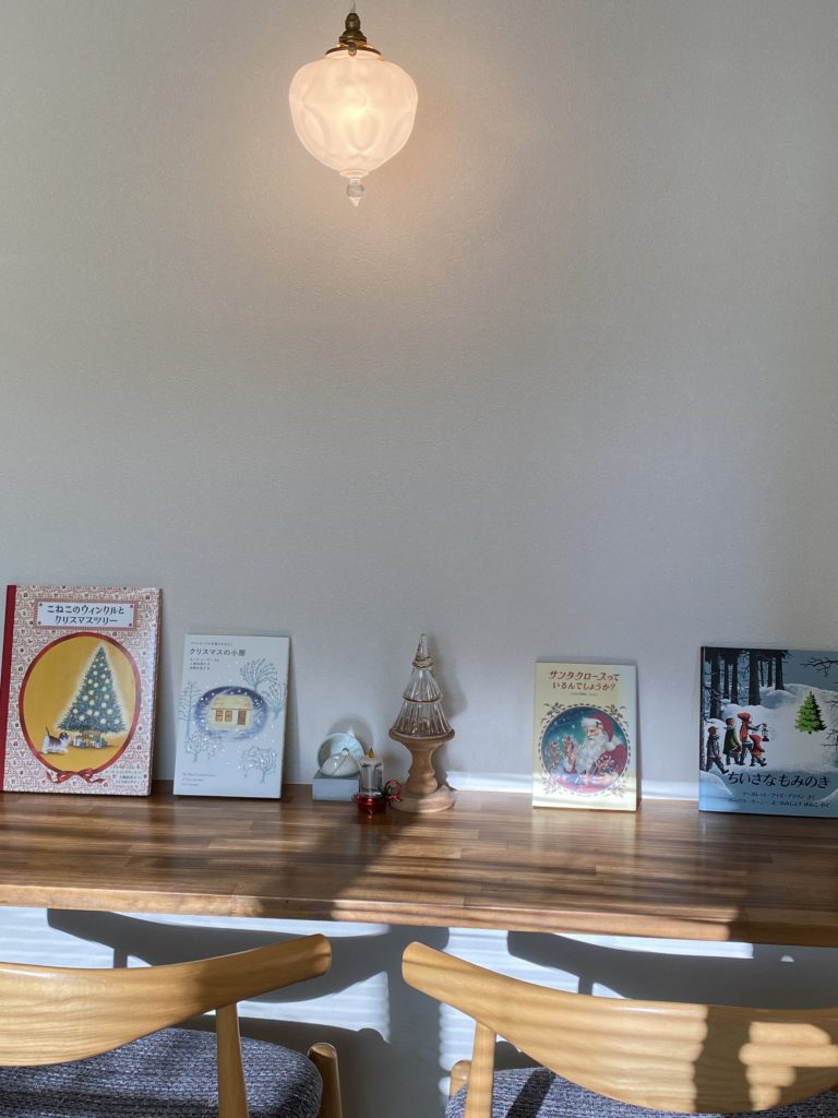 絵本deカフェのお部屋には、クリスマスにちなんだ絵本が並んでいます。